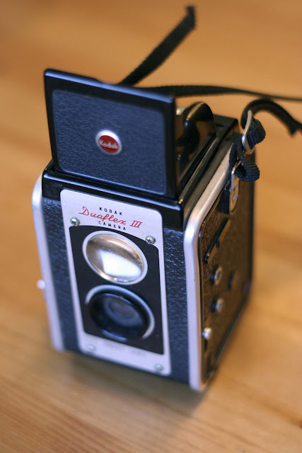 I got this lovely Duaflex set on Ebay for $12! It was a bargain. I'll admit that the only reason I got a bargain on it was because the person who listed it misspelled the name of the camera and I don't think very many people even knew that it was there. The only reason I found this misspelled listing is because I misspelled it in the search bar. Ha! I don't plan on actually running film through it, but I do plan on practicing TTV or "through the viewfinder" photography with it. Google it sometime. It's amazing!